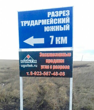 указывающий направление в сторону «Угольного Магазина», ООО «УгольТэк».